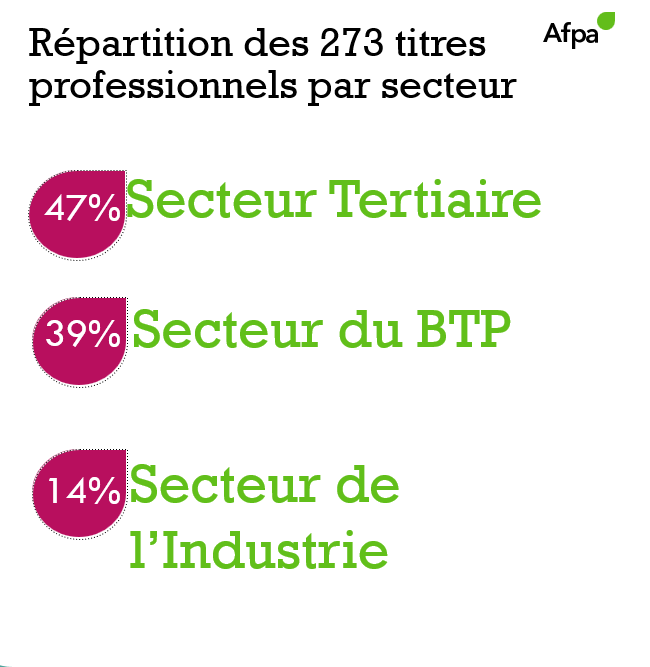 En 2025, c’est un patrimoine de 273 titres professionnels qui ont été attribués à 161 000 certifiés, dont la moitié issue de formations délivrées dans des centres Afpa. Cet ensemble de titres professionnels est régulièrement actualisé pour tenir compte de l’évolution des emplois et des qualifications. Ils couvrent tous l’ensemble des champs professionnels : bâtiment et travaux publics, industrie et secteur tertiaire.